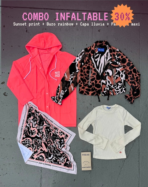 Sunset Print + Buzo Rainbow + Capa de lluvia + Pañoleta Maxi con 30%OFF.