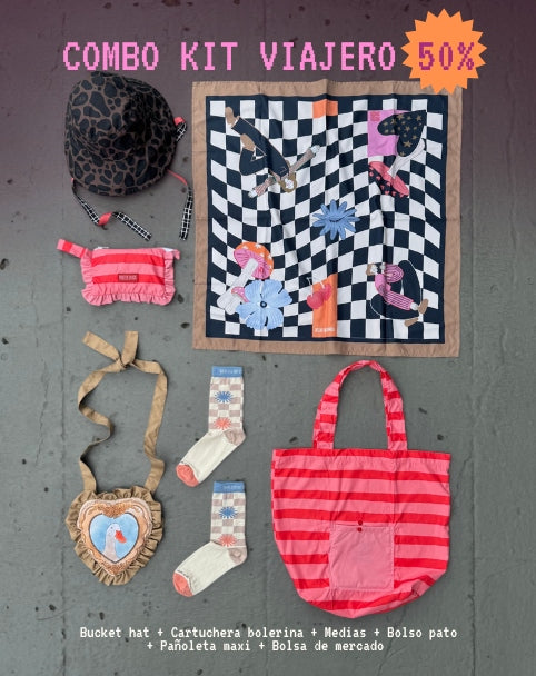 Bucket Hat + Cartuchera Bolerina (color disponible) + Medias + Bolso Pato + Pañoleta + Bolsa de Mercado con 50%OFF.