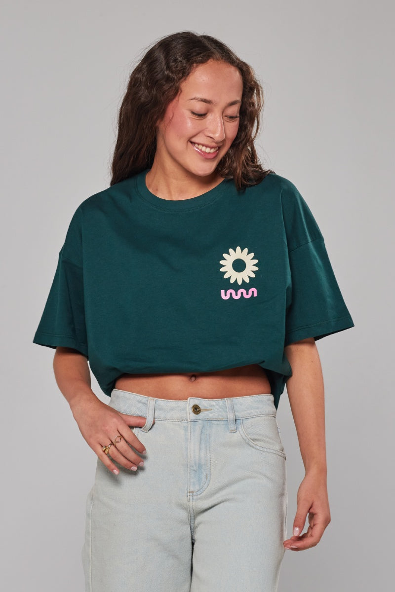 Color Flow es una camiseta en algodón suave con un print en la espalda lleno de color y movimiento. No tiene abertura lateral, lo que le da una silueta más clásica y limpia. Una pieza vibrante para quienes aman los detalles distintos.