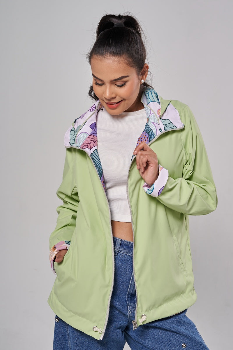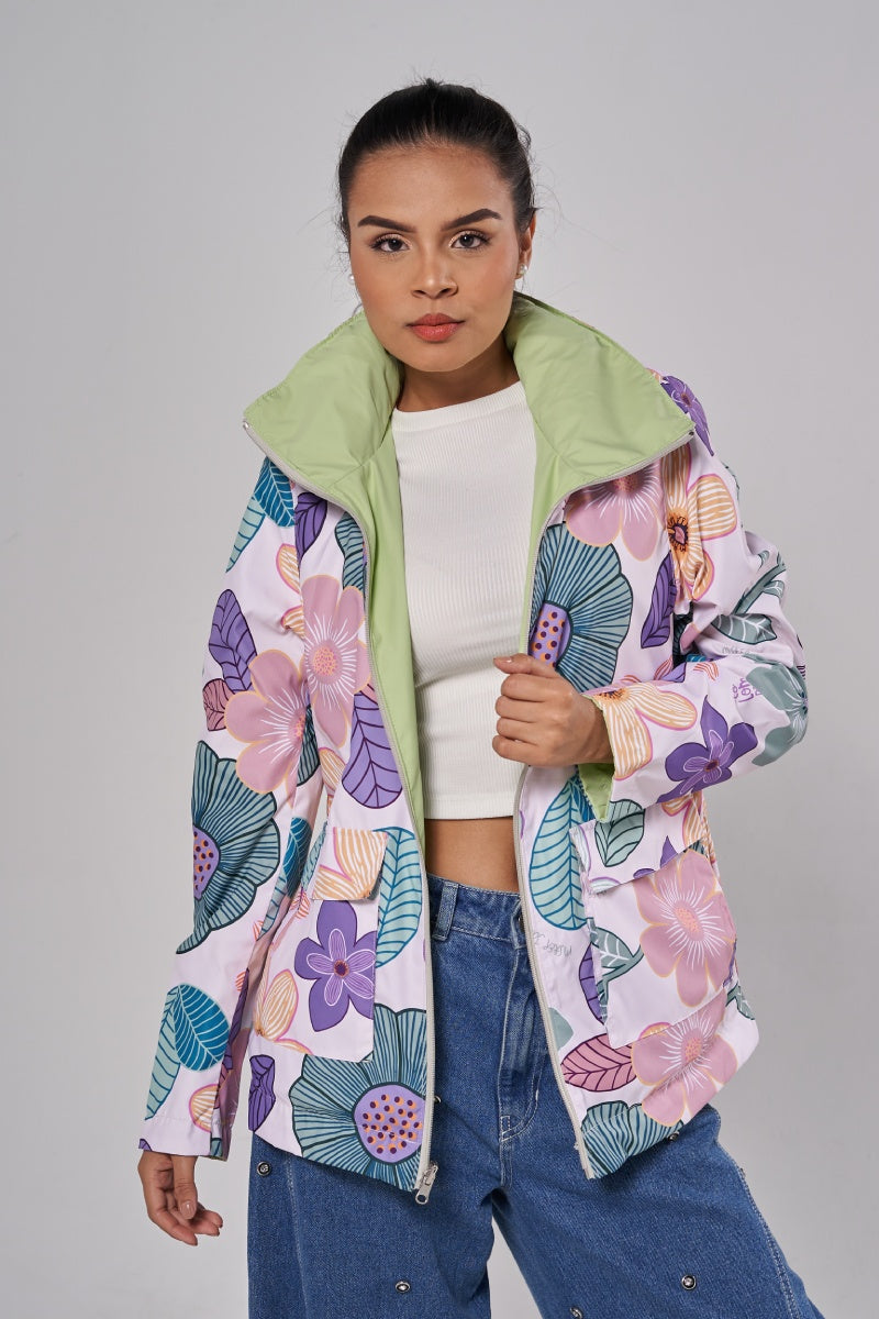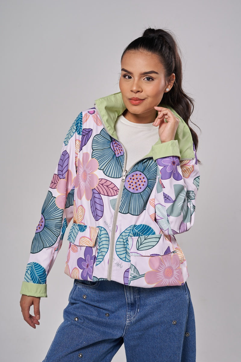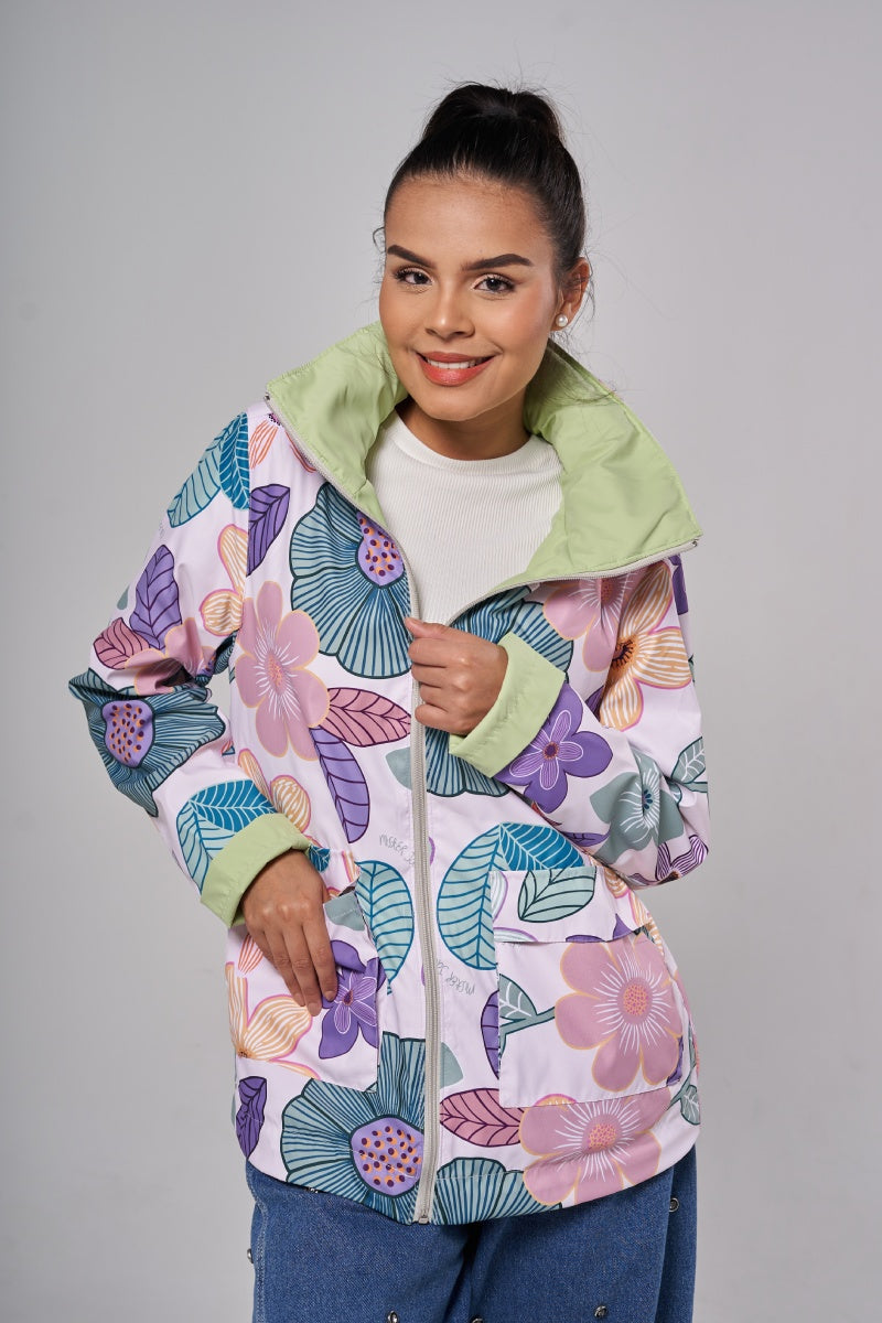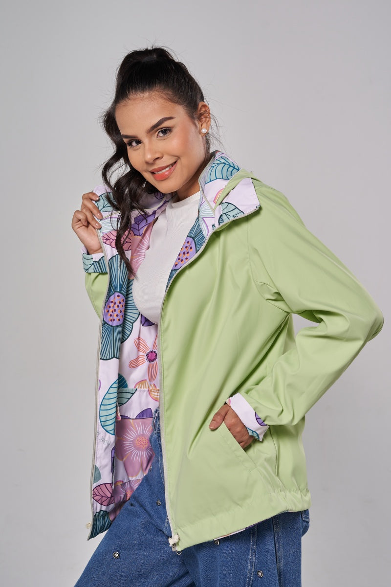 Dos moods, cero reglas. De un lado, print botánico vibrante; del otro, color sólido que va con todo. Reversible, práctica, liviana .Además cuenta con repelencia al agua, protección solar , capota guardable y bolsita para colgártela. Dos moods en una sola prenda.