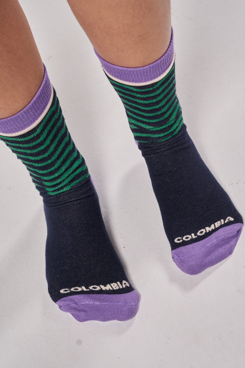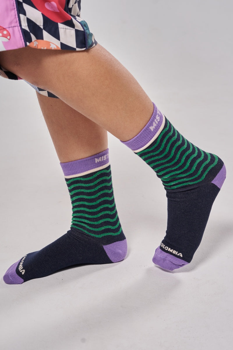 Las Medias Brisa Verde traen el toque fresco que tu look necesita. Azules con líneas verdes, combinan suavidad y comodidad gracias a su tejido en algodón peinado.