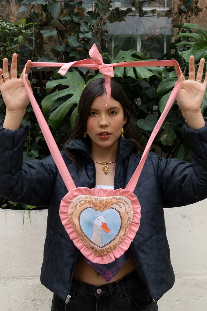 ¿Por qué conformarte con lo común? Este mini bolso en forma de corazón será tu nueva obsesión. Tela repelente al agua, correa ajustable y un print exclusivo que es puro arte.