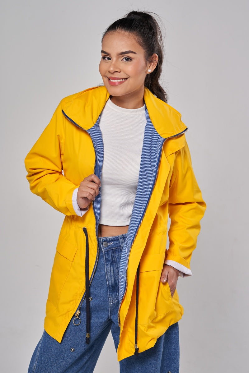 Un rayo de sol en tu armario, nuestra chaqueta clásica tipo parka es perfecta para cualquier clima con su diseño atemporal nacido en 2014, protección contra lluvias ligeras, forro aterciopelado, capucha guardable y bolsillo interno ¿Sabes por qué todos la aman? Pruébala y descúbrelo.