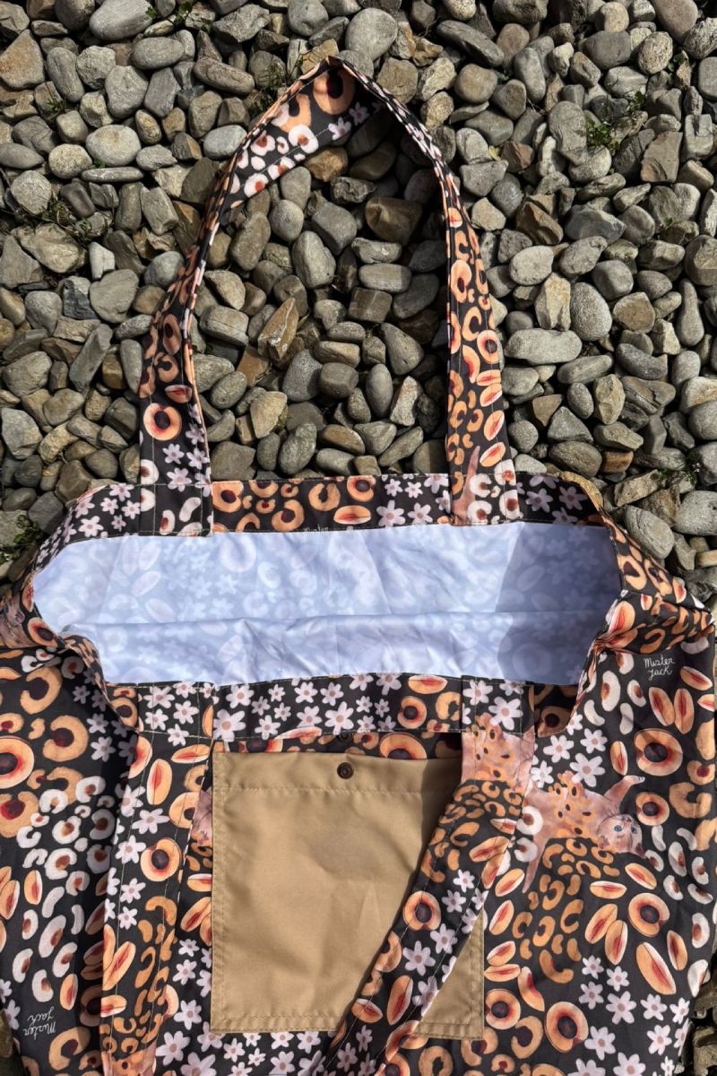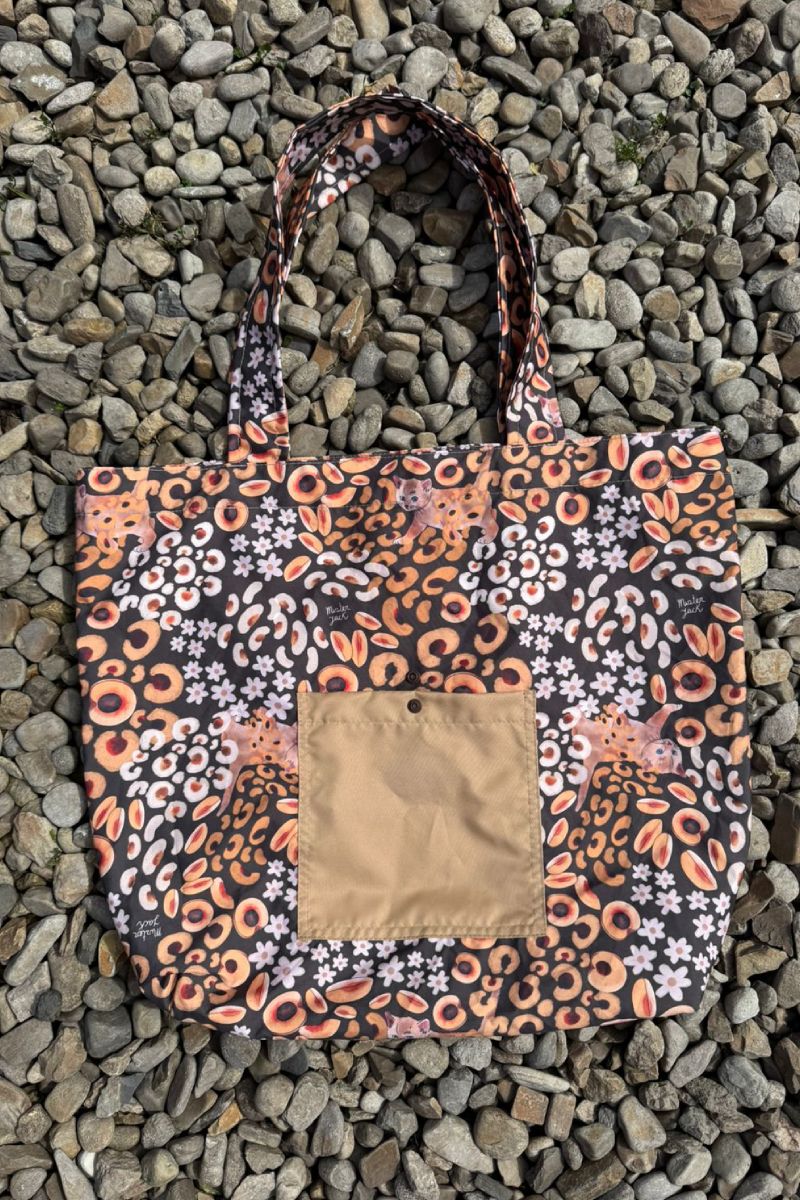 Más que una bolsa, un esencial. Repelente al agua, plegable y con prints únicos. Se guarda en su propio bolsillo y siempre está lista para la acción.