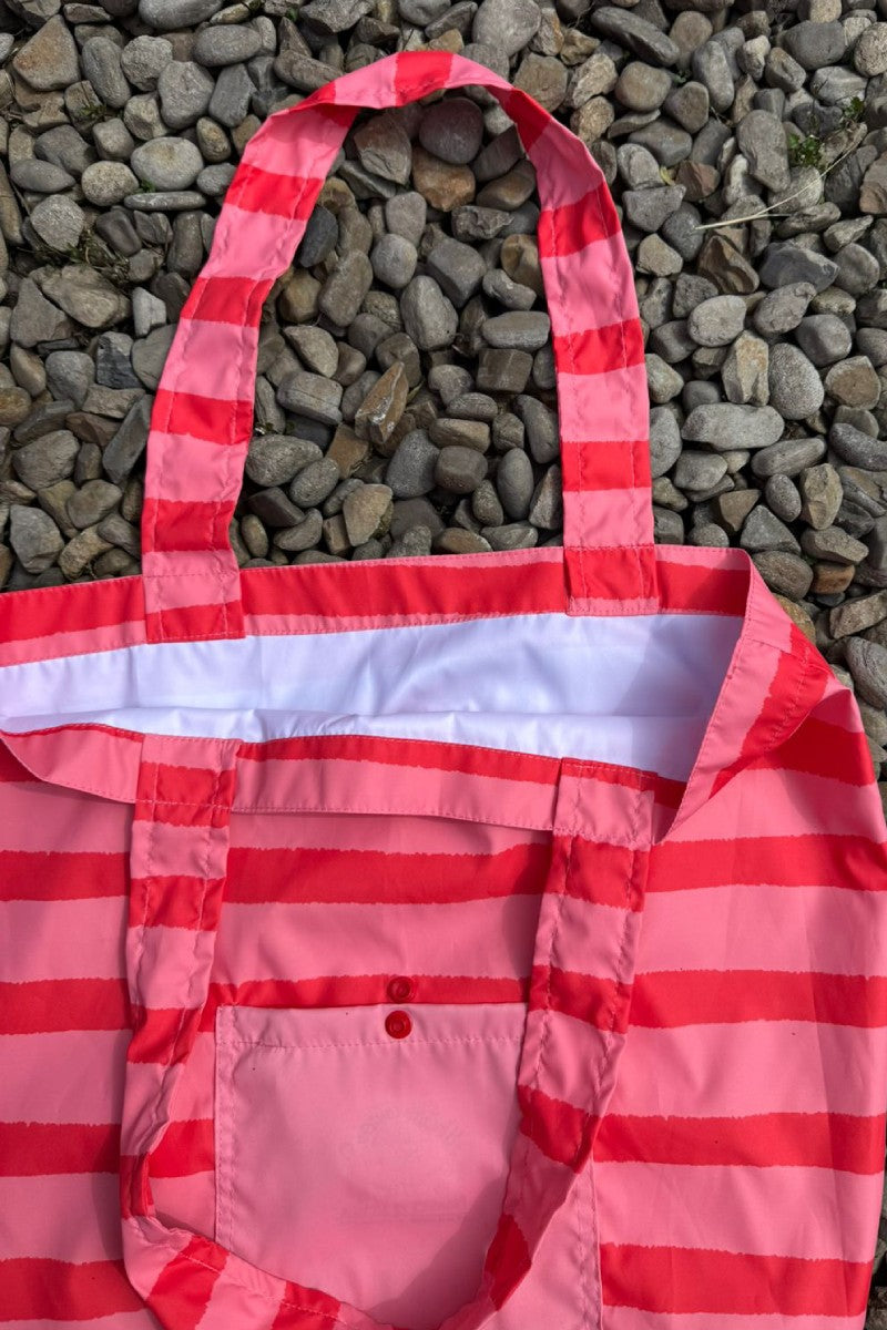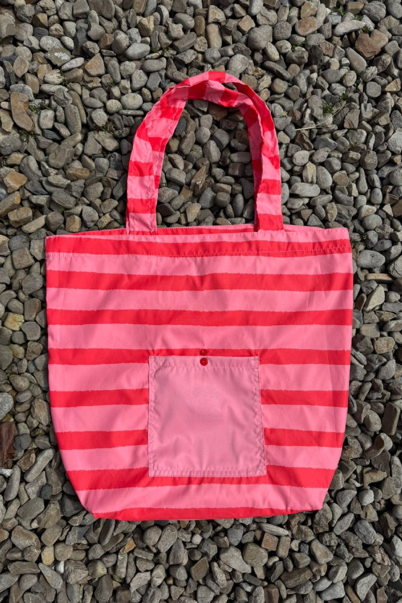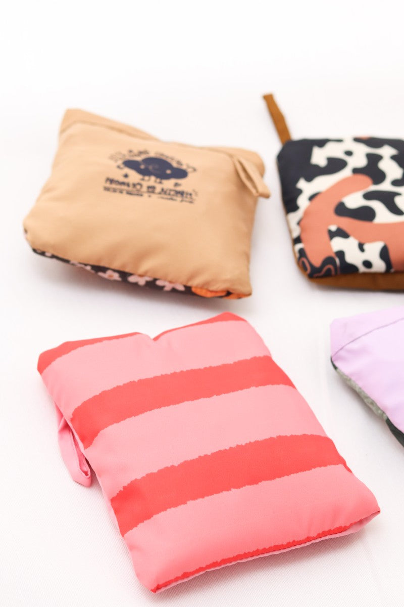 Más que una bolsa, un esencial. Repelente al agua, plegable y con prints únicos. Se guarda en su propio bolsillo y siempre está lista para la acción.